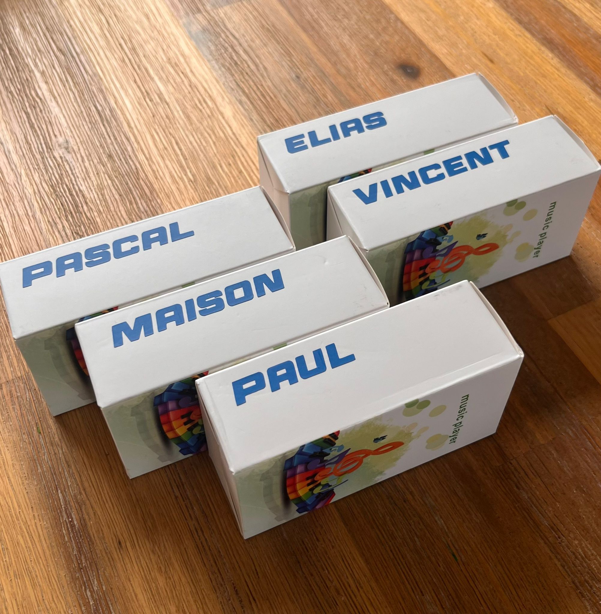 Die Gruppe der Jüngsten, die „Kleinen Riesen“ genannt, erhielten zusätzlich von Kinderlandschaft e.V. tolle Ostergeschenke: MP 3 Player, wunderschön mit individuellem Branding.